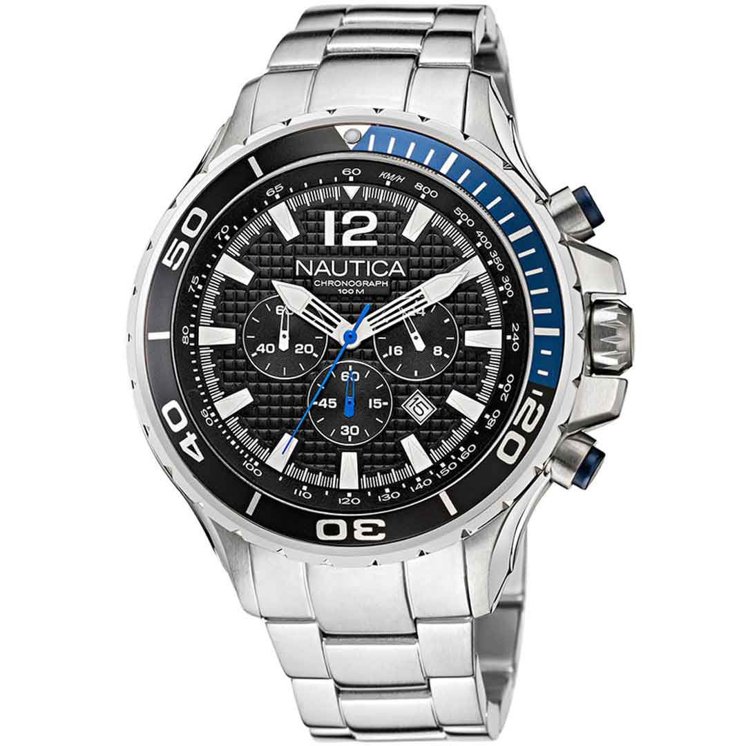 Upečatljiv sat sportskog izgleda. Analogni model koji ima mineralno staklo, kućište prečnika 49mm i čeličnui narukvicu srebrne boje. Kružni brojčanik je crne boje i sadrži hronograf i datumski prikaz. Ovaj Nautica model sadrži krunicu sa šrafom, a njegova vodootpornost je do 10ATM. Sat dolazi u originalnom fabričkom pakovanju sa kutijom, certifikatima i međunarodnom garancijom, a ovaj model je dio kolekcije NST.
