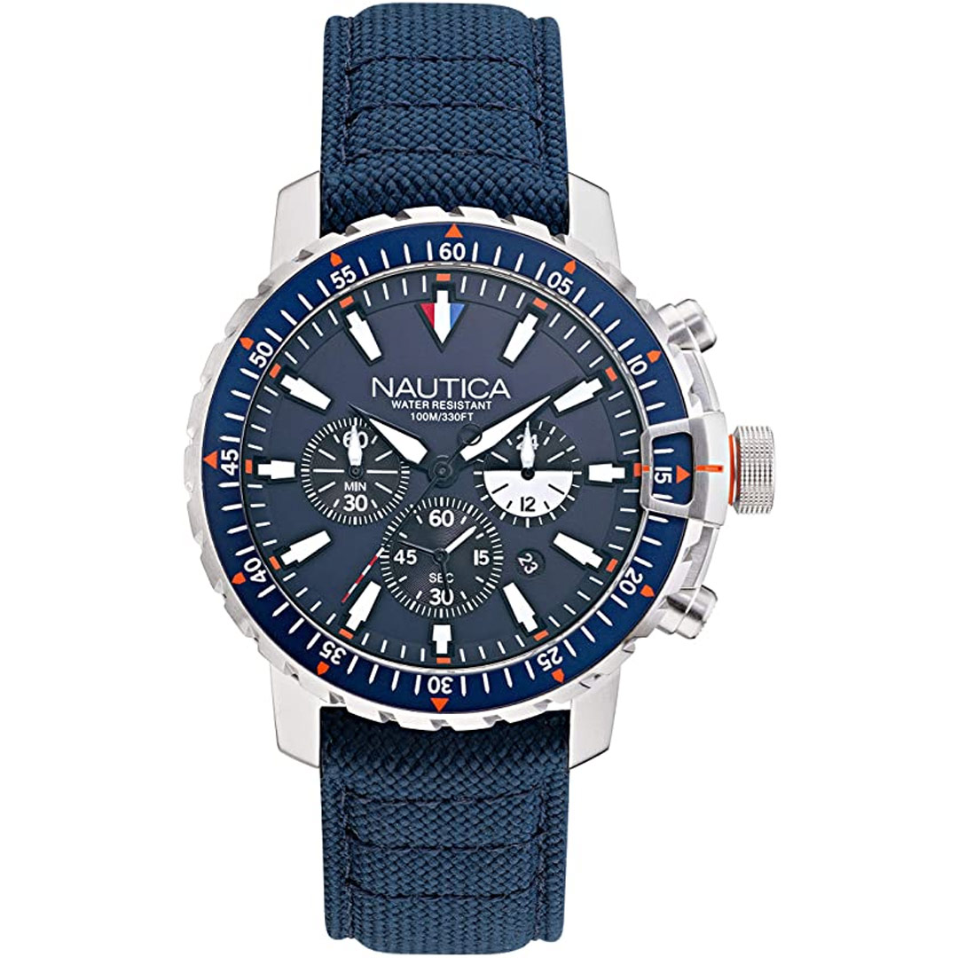 Sat sportskog, ali i elegantnog izgleda. Analogni sat koji ima mineralno staklo, kućište prečnika 45mm i platnenu narukvicu teget boje. Brojčanik je teget boje i sadrži hronograf i datumski prikaz. Podioci su bijele boje, dok se umjesto broja 12 nalazi simbol pomorske zastavice. Ovaj Nautica model sadrži krunicu sa šrafom, a njegova vodootpornost je do 10ATM. Sat dolazi u originalnom fabričkom pakovanju sa kutijom, certifikatima i međunarodnom garancijom, a ovaj model je dio kolekcije ICEBREAKER.